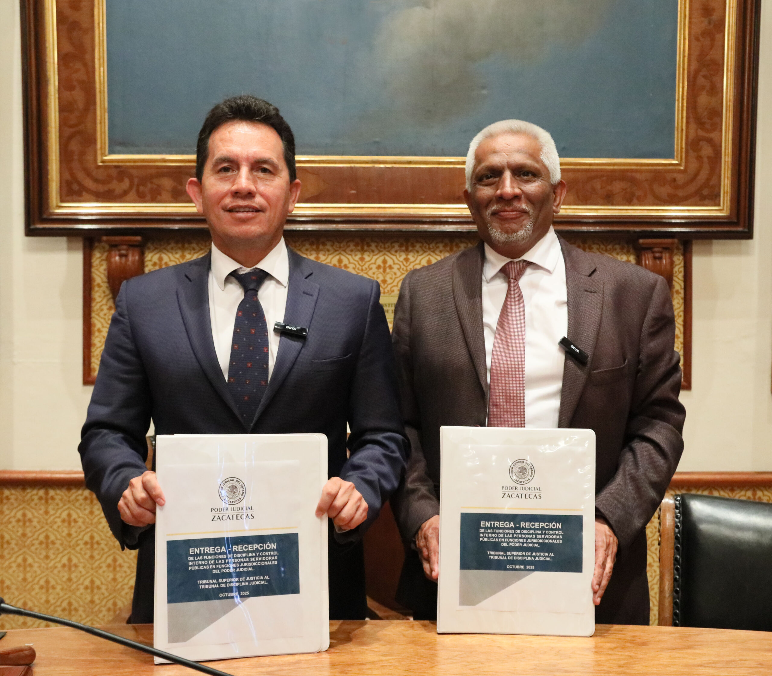 Durante el evento, los magistrados presidentes Carlos Villegas Márquez (TSJEZ) y José Luis Hernández Ugalde (TDJ) firmaron el acta de entrega-recepción, que incluye documentos como el Marco Jurídico y Plan de Trabajo, la Relación de Asuntos Pendientes, la Relación de Archivos Digitales, el Informe de Labores y los Expedientes en Trámite.