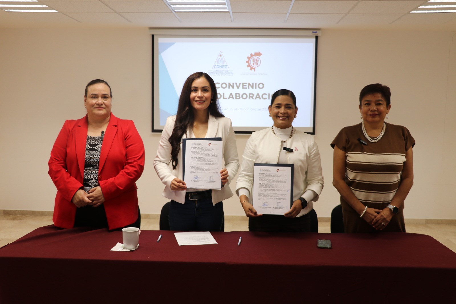 Durante el acto protocolario, la Dra. Maricela Dimas Reveles, Presidenta de la CDHEZ, destacó que este acuerdo representa el compromiso conjunto de ambas instituciones para fortalecer la educación en valores, el respeto y la dignidad humana dentro de los espacios escolares.