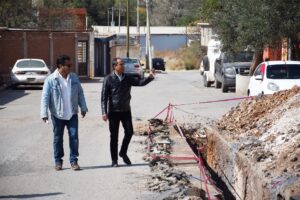 Cumpliendo con las familias de Zóquite y con la Presidenta Claudia Sheinbaum de dotar de servicios básicos hídricos a las y los guadalupenses, Pepe Saldívar supervisó los trabajos de obra de la construcción de red de drenaje sanitario en el Boulevard Luis de Echeverría de esta comunidad.
