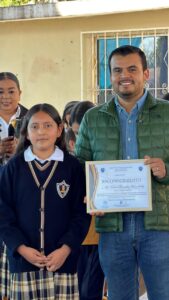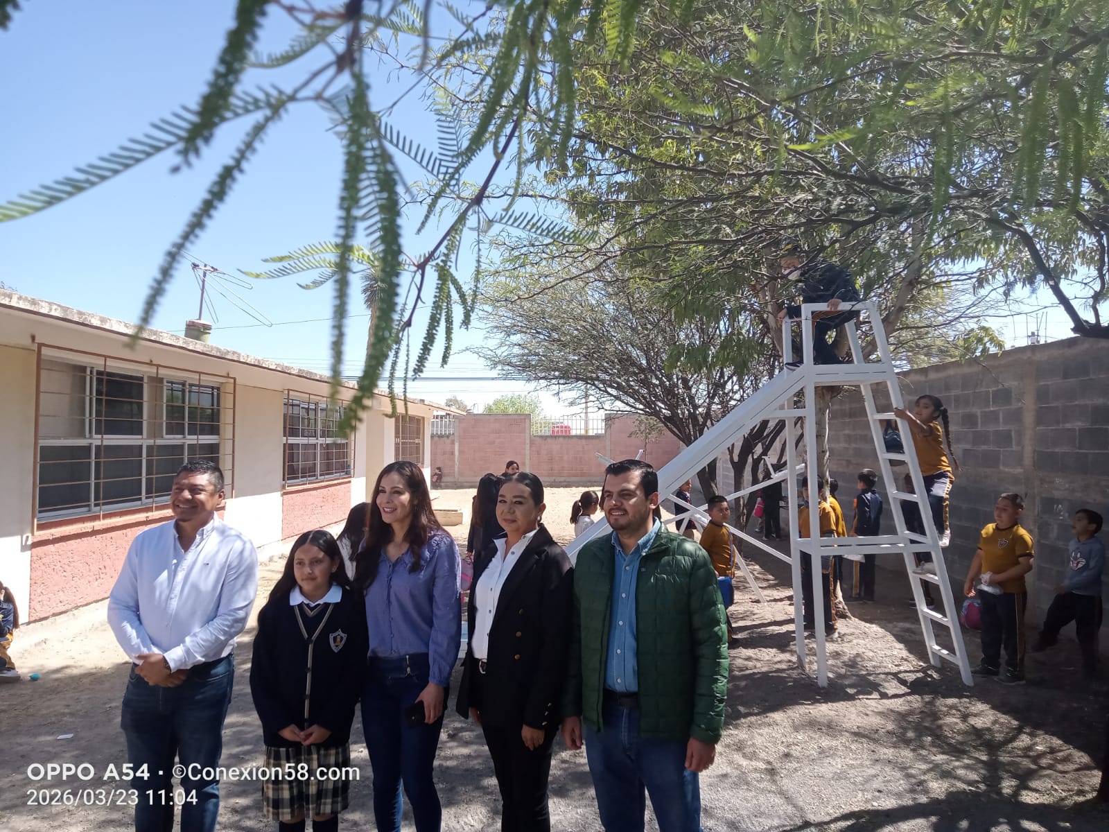 El legislador, visito esa escuela que cuenta con una población de 343 alumnos y sus maestros, a fin de poder entregar esos juegos, mismos que habían sido solicitados por la jovencita Mildred Olvera Tafoya, niña ganadora en el 2025 de un concurso estatal de derechos humanos convocado por una instancia estatal, donde con su trabajo donde citaba los derechos a la convivencia y ala alegría, fue que se llevaron los juegos mecánicos.