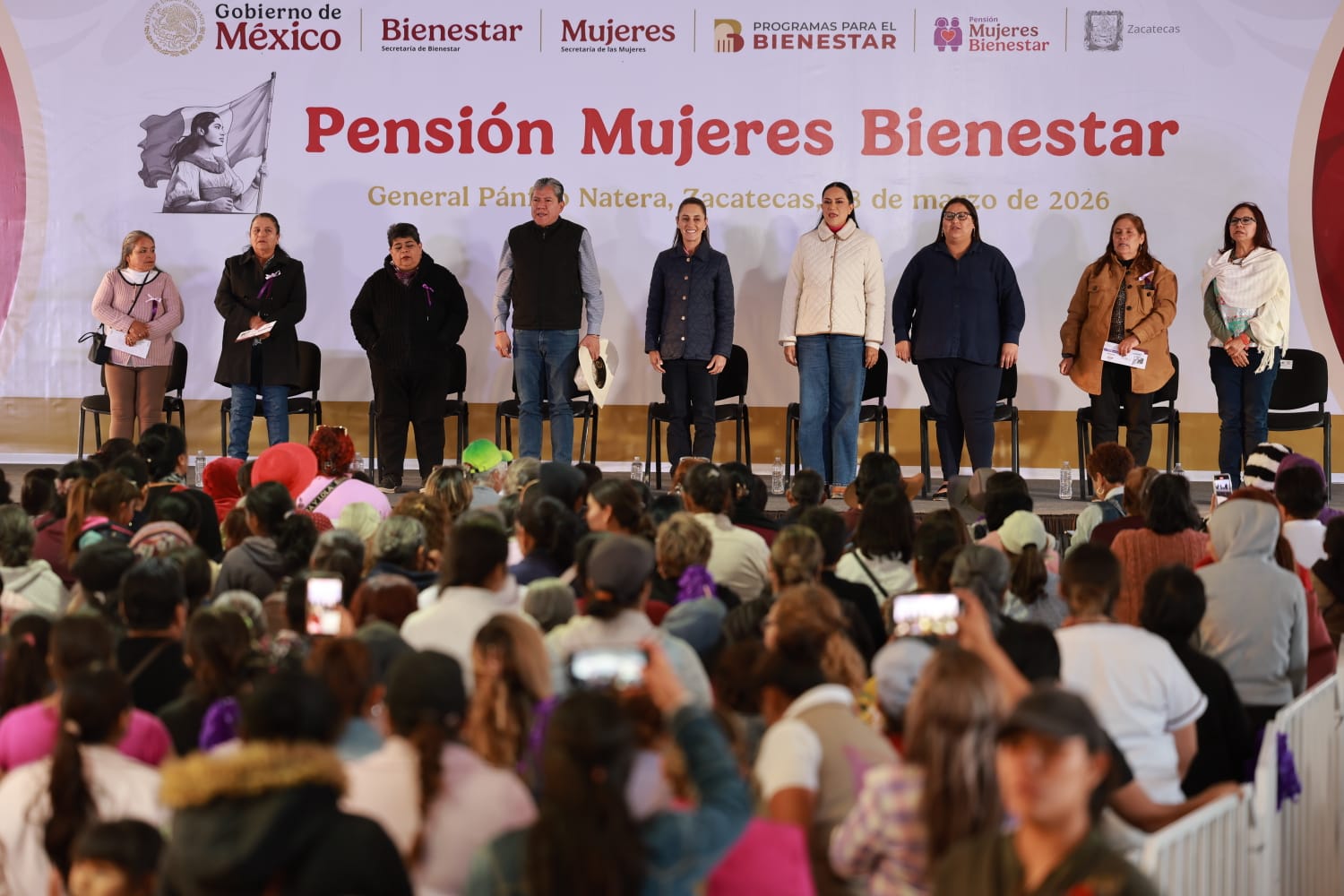 En el evento realizado en el municipio General Pánfilo Natera, refirió que, en la entidad, reciben la Pensión Mujeres Bienestar 36 mil zacatecanas mayores de 60 años.
