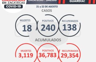 La Secretaría Salud de Zacatecas (SSZ) reportó que, durante el fin de semana, se registraron 240 nuevos contagios de COVID-19, 138 recuperados…