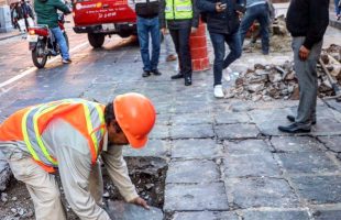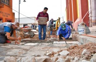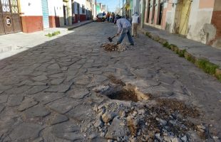Continúan Trabajos de Bacheo en Centro Histórico.