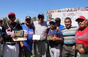 Fresnillo, Zac.- El Presidente Municipal, Saúl Monreal Ávila, reconoció a los beisbolistas de El Mineral mayores de 60 años, quienes han…