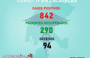 Este día, Zacatecas acumuló un total de 842 casos de Coronavirus (COVID-19), al registrar 22 nuevos contagios, y 94 fallecimientos, con otro…
