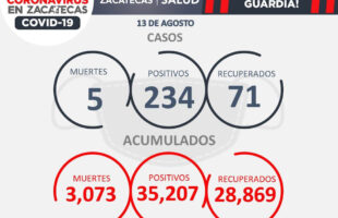 Este viernes, la Secretaría de Salud de Zacatecas (SSZ) reportó 234 nuevos contagios de COVID-19 y cinco fallecimientos, entre ellos el de…