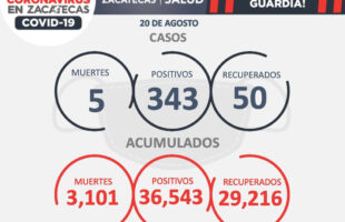 Este miércoles, la Secretaría de Salud de Zacatecas (SSZ) reportó cuatro fallecimientos y 343 nuevos contagios de COVID-19, la cifra más alta…