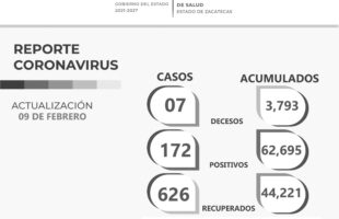 Este miércoles, las autoridades estatales de salud reportaron la recuperación de 626 zacatecanos, 172 nuevos casos positivos y siete fallecimientos causados por…