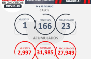 Este fin de semana, la Secretaría de Salud de Zacatecas (SSZ) reportó 166 casos positivos de COVID-19, una muerte causada por el…