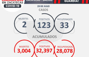 Dos muertes por complicaciones de COVID-19, 123 nuevos contagios y 33 personas recuperadas es el reporte que la Secretaría de Salud de…