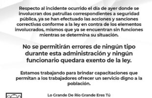 RÍO GRANDE, ZAC.- Ante los hechos que se suscitaron este domingo, con elementos de la corporación de seguridad pública en Río Grande,…