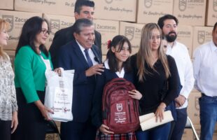 Entrega Guadalupe Mochilas a Estudiantes del Conalep.
