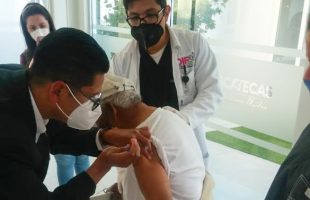 Don Antonio Dévora, de 76 años edad y vecino de la colonia Las Arboledas, fue la primera persona en recibir la vacuna…